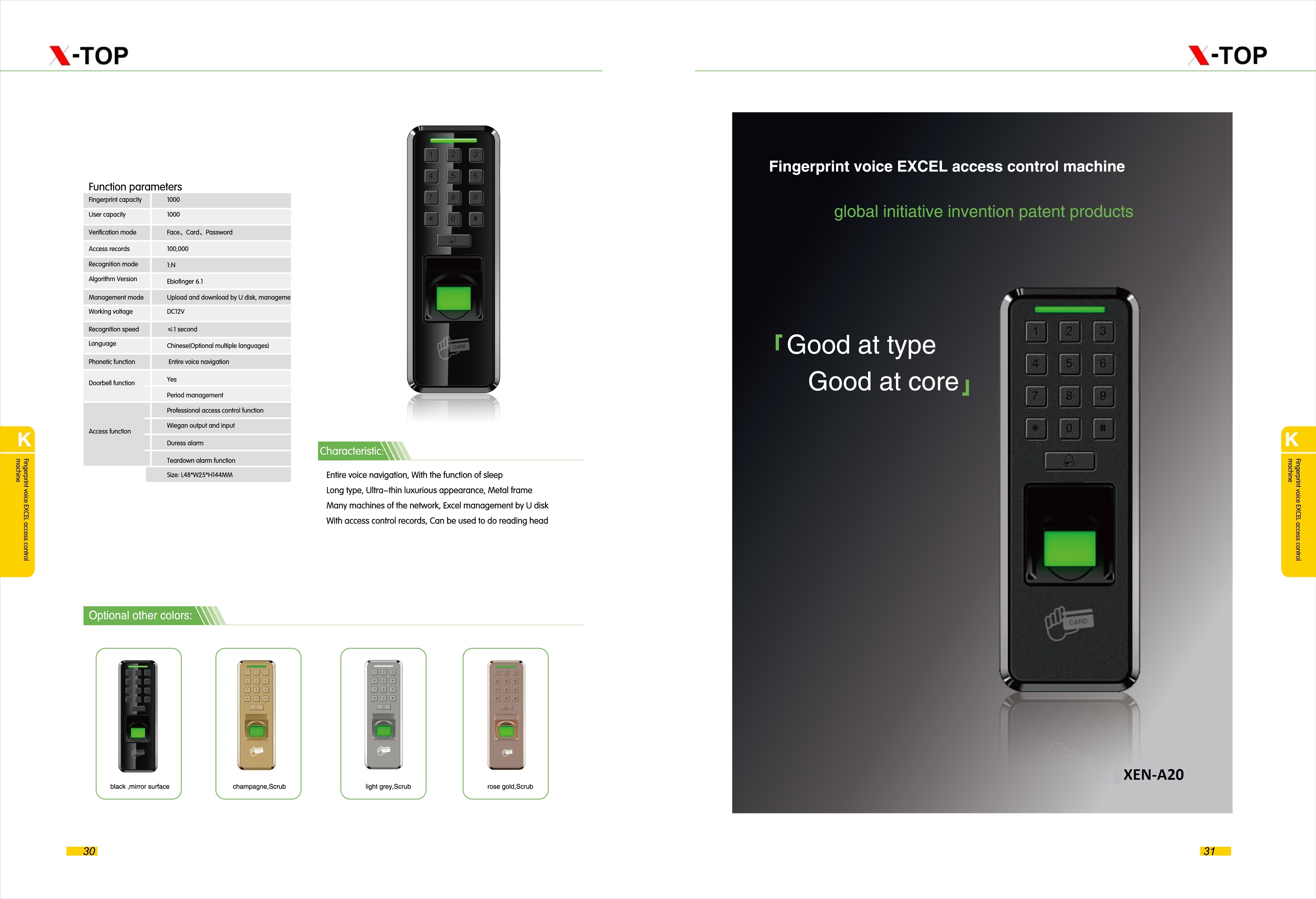 Easy voice navigation, with the function of sleep long type, ultra-thin luxurious appearance, metal frame many machines of the network, excel management by U disk with access control records, can be used to reading head.